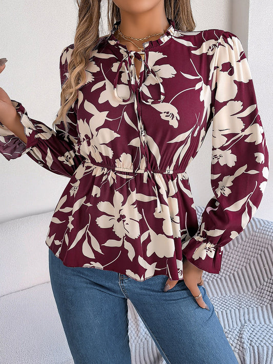 Langarmbluse mit floralem Muster und Bindung