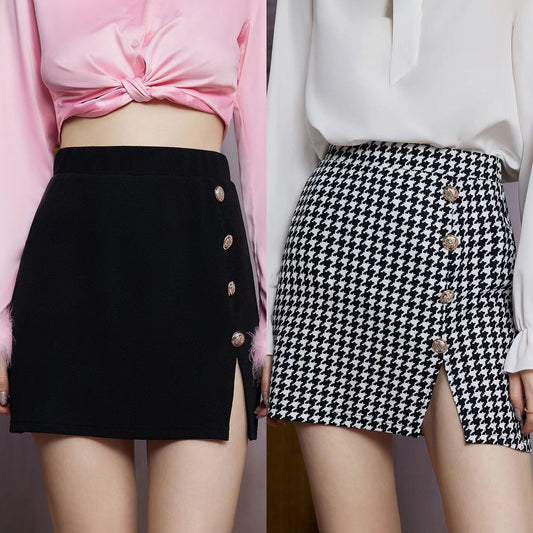 Kurzer Rock mit Knopfleiste und hohem Bund