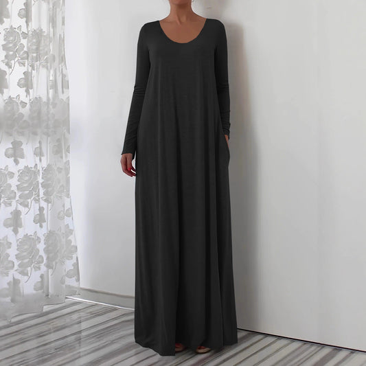 Langes Kleid mit Rundhalsausschnitt und Langarm
