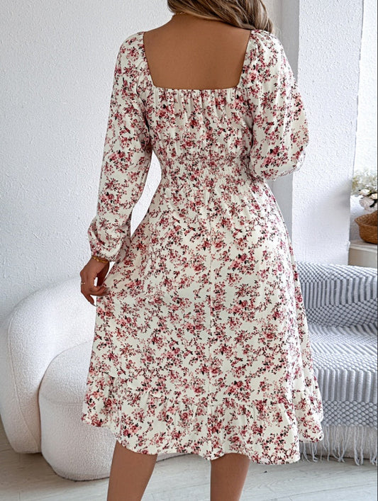 Midikleid mit eckigem Ausschnitt, Langarm und Schlitz
